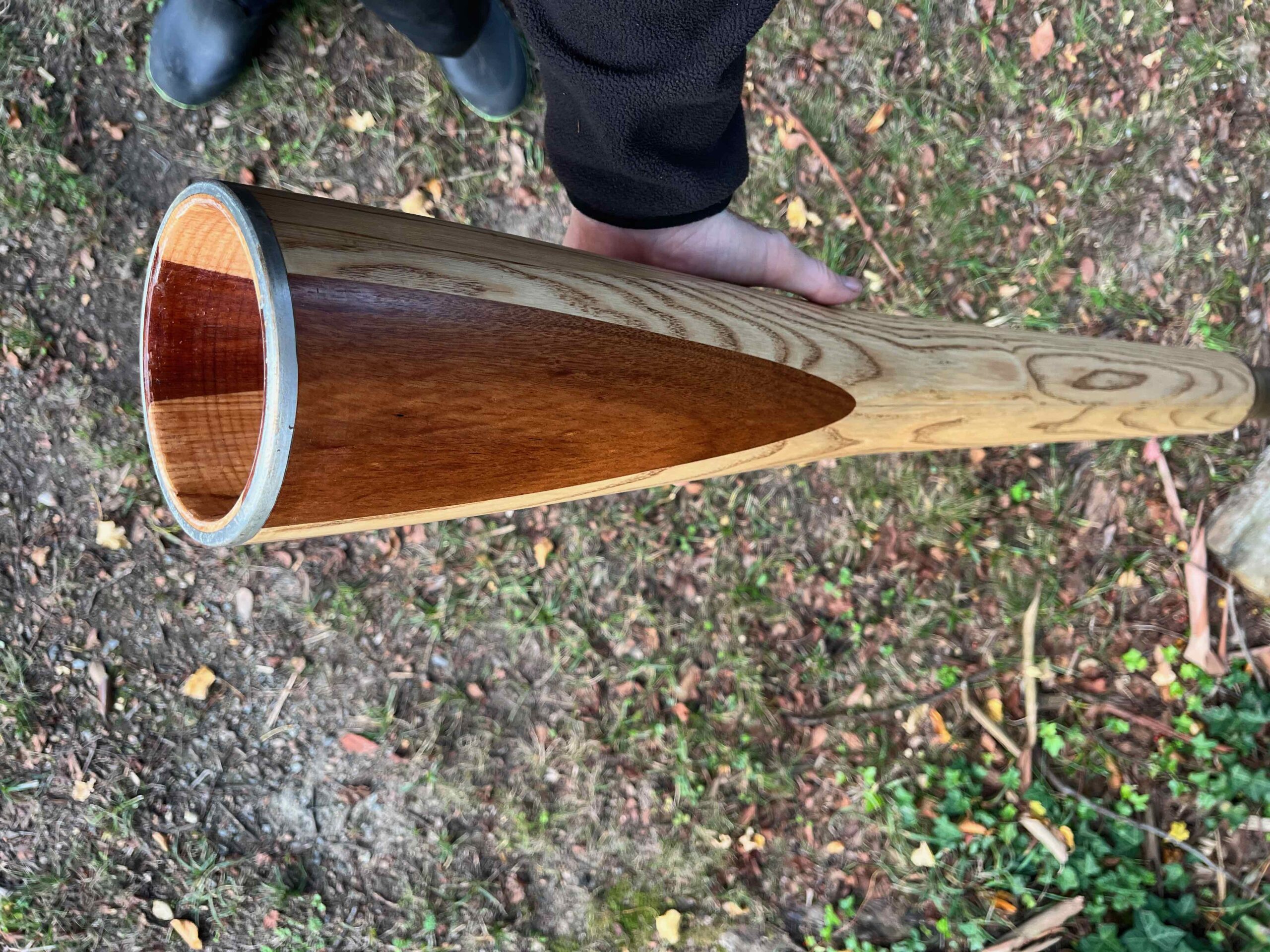 Median tube : varnish and patined brass / laiton patiné et vernis